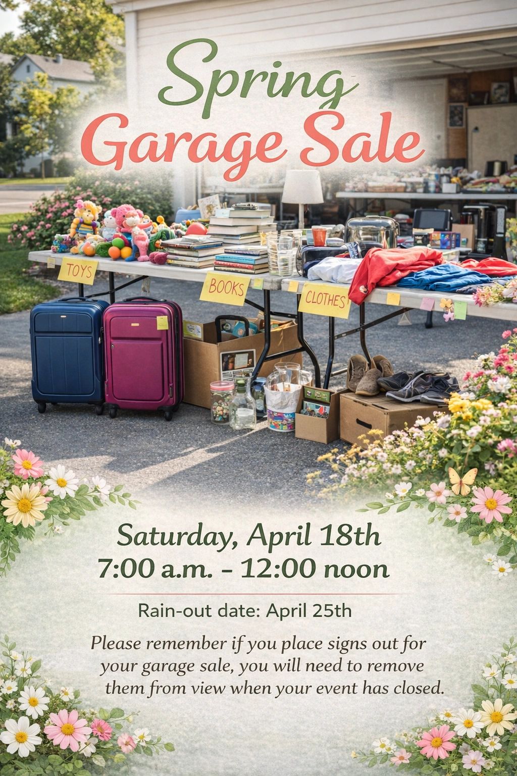 Please remember if you place signs out for your garage sale, you will need to remove them from view when your event has closed.